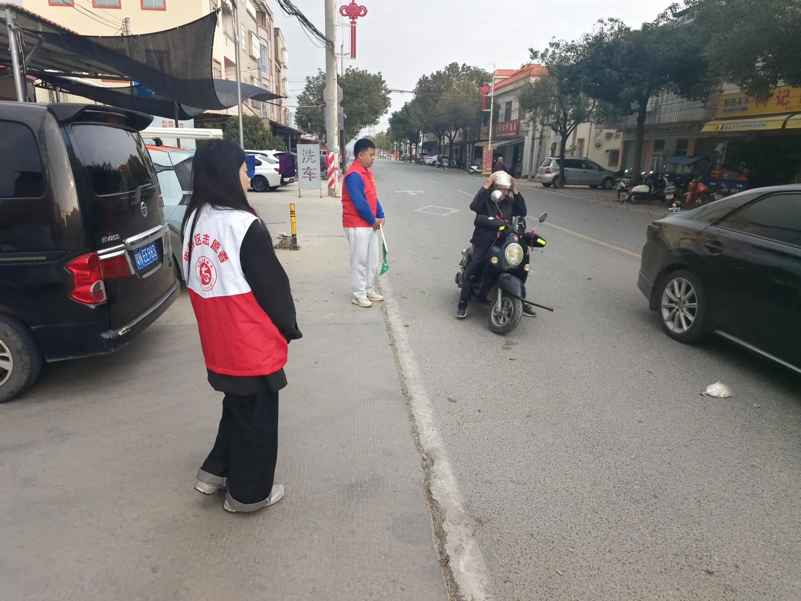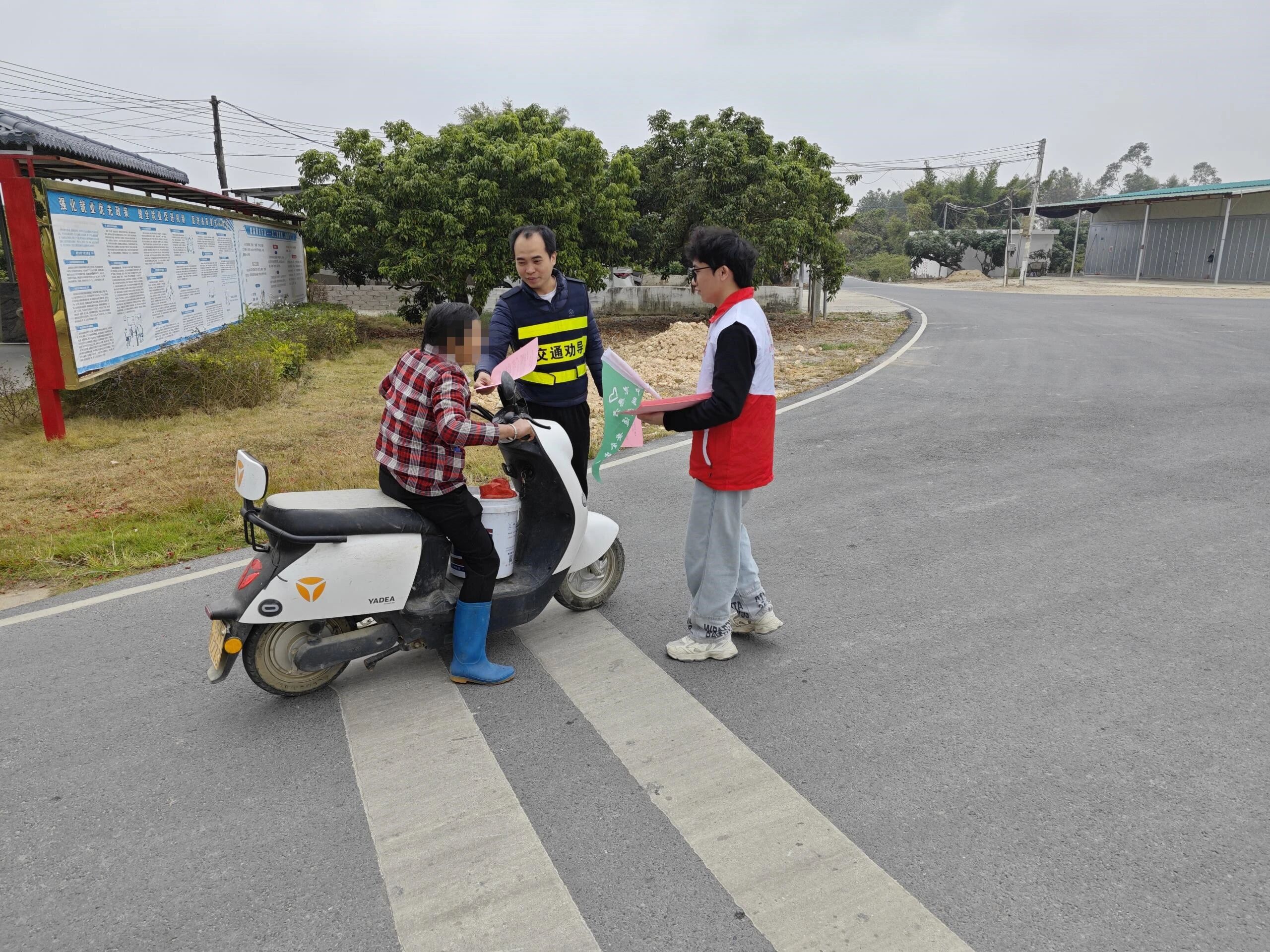 “大哥,骑行摩托车一定要戴好安全头盔,这是保护自己的第一道防线!”“大姐,电动车违规载人很危险,千万不能抱有侥幸心理”……志愿者们耐心细致地讲解不戴安全头盔、违规载人、超速行驶等行为的潜在危害,用朴实的语言将交通安全知识传递给每一位出行者,让安全理念深入人心。