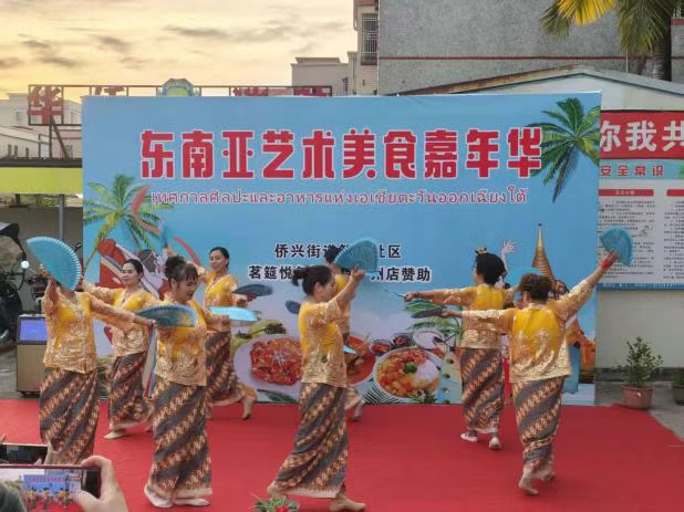 随着表彰仪式的落幕,东南亚艺术美食嘉年华正式拉开帷幕,将活动气氛推向高潮。现场精心准备了沙嗲肉片、加多加多凉拌菜、印尼虾片、黄姜饭等特色美食,香气四溢。乡亲们一边品鉴美食,一边交流感受,在体验沙嗲肉片香浓、加多加多清爽、印尼虾片酥脆、黄姜饭醇厚的同时,感受多元文化魅力。此次美食嘉年华不仅带来舌尖上的享受,更搭建起文化交流桥梁,传承侨乡开放包容精神,以“舌尖上的文化之桥”拉近邻里距离,传递美好生活温情。