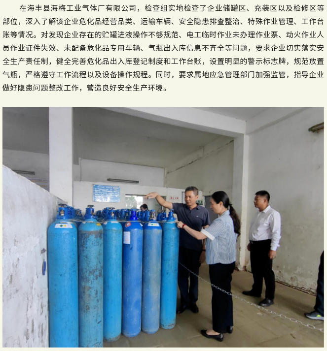 市应急管理局主要领导到海丰县督导检查重大事故隐患排查整治工作