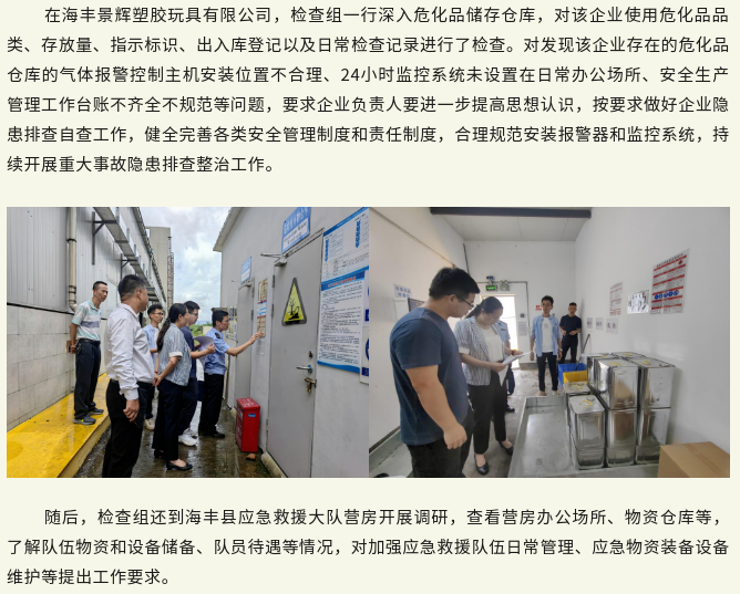 市应急管理局主要领导到海丰县督导检查重大事故隐患排查整治工作-电玩城下载