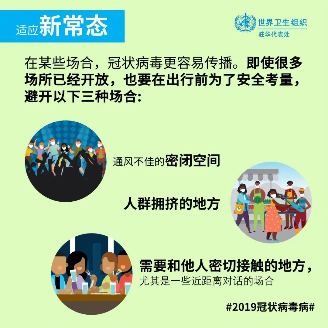 一些往年常见的聚会场合很可能也是新型冠状病毒传播的“风水宝地”。参考下图,避开2019冠状病毒病喜欢的场所?