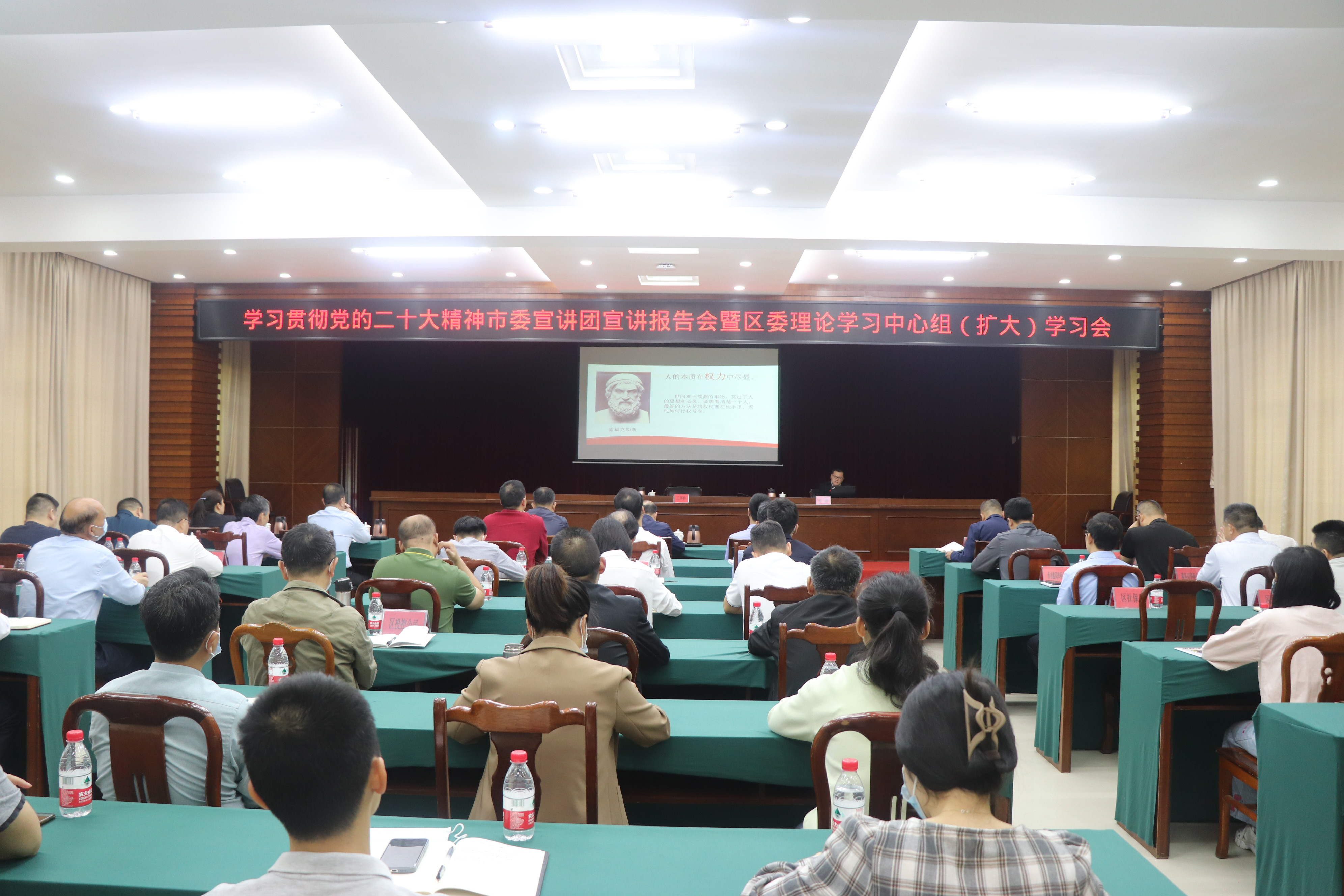 我区召开学习贯彻党的二十大精神市委宣讲团宣讲报告会暨区委理论学习中心组(扩大)学习会