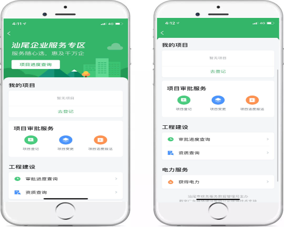 目前,“粤商通·企业服务专区”已上线项目立项登记、项目信息变更、项目进度报送、事项审批进度跟踪、建筑行业相关资质查询、用电报装等6大类服务,凡是申请以上服务的,均可通过手机进行即时办理。同时,企业还可以通过出示项目代码二维码,作为项目“身份证”,窗口人员直接扫码即可登记项目和企业的基本信息,确保工程建设项目审批全流程“一码通办”。下来,我市将继续优化、上线更多功能和服务内容,实现建设工程规划许可证、施工许可证等高频事项“掌上”查询、“指尖”申报、动态跟踪,进一步节省企业办事时间,实现“足不出户”“掌上办”,切实优化营商环境,不断提升企业、群众满意度,让市场主体“省事、省时、省钱、省力”。