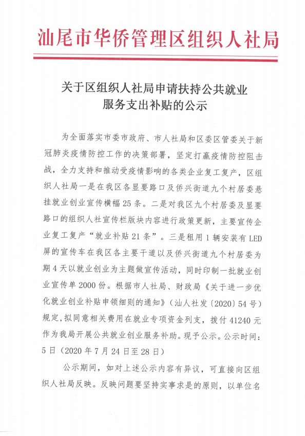 关于区组织人社局申请扶持公共就业服务支出补贴的公示-电玩城下载