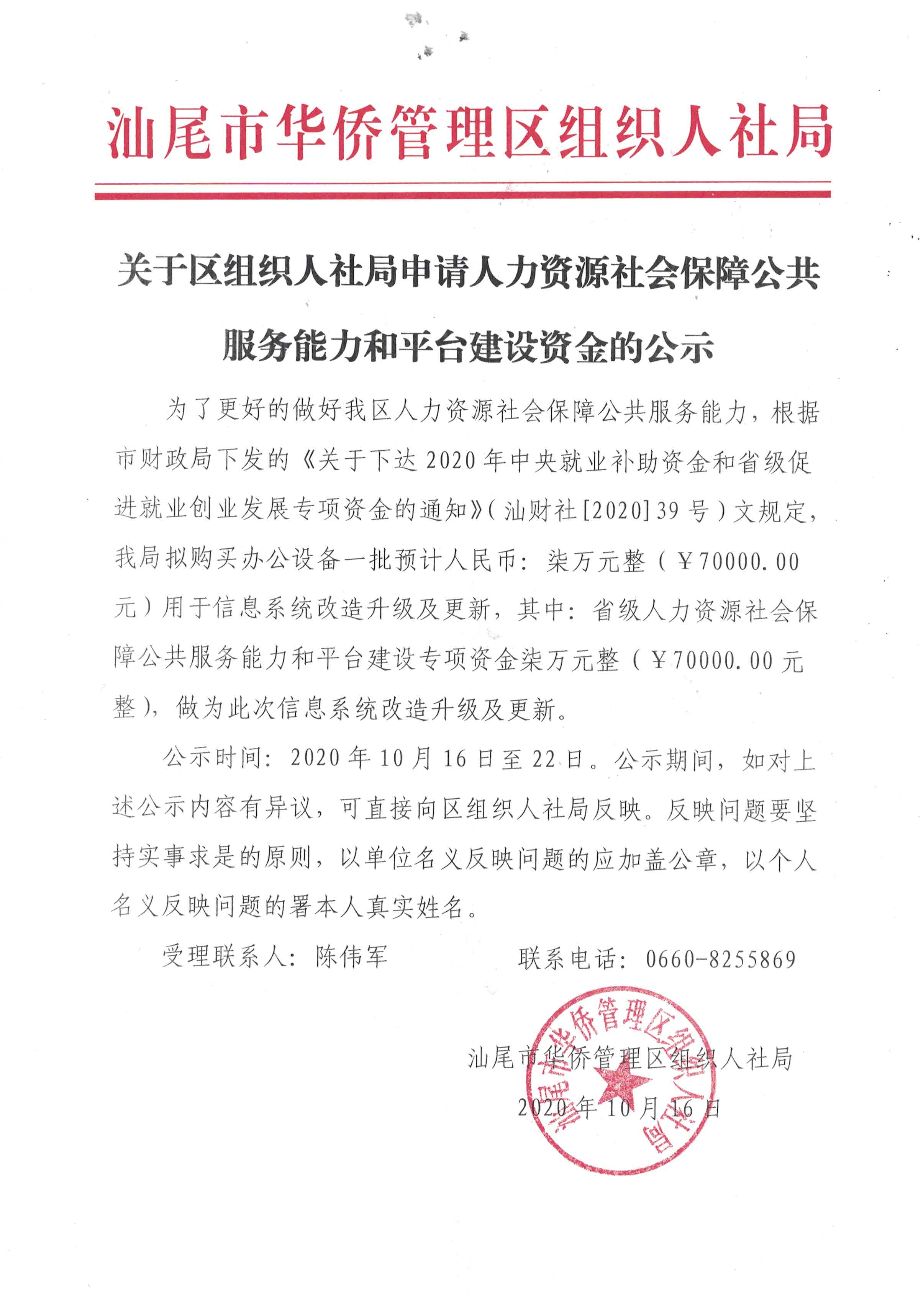 关于区组织人社局申请人力资源社会保障公共服务能力和平台建设资金的公示-电玩城下载